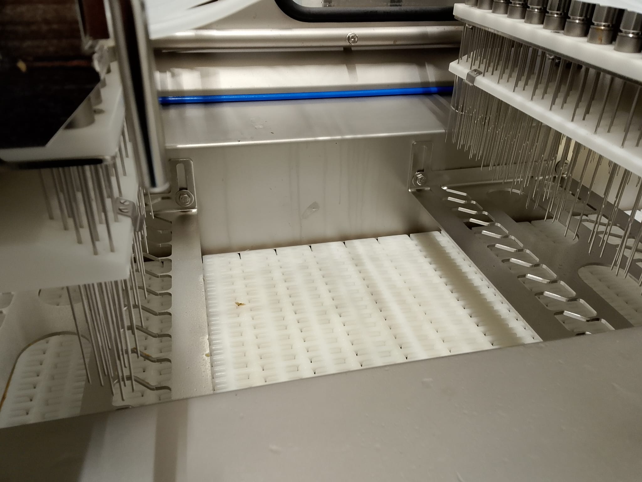 The sectionally-divided, pneumatic stripper feet closely follow the product contours, preventing movement when the needles are retracted. This ensures a uniform needle pattern and prevents double injections or missed injections.